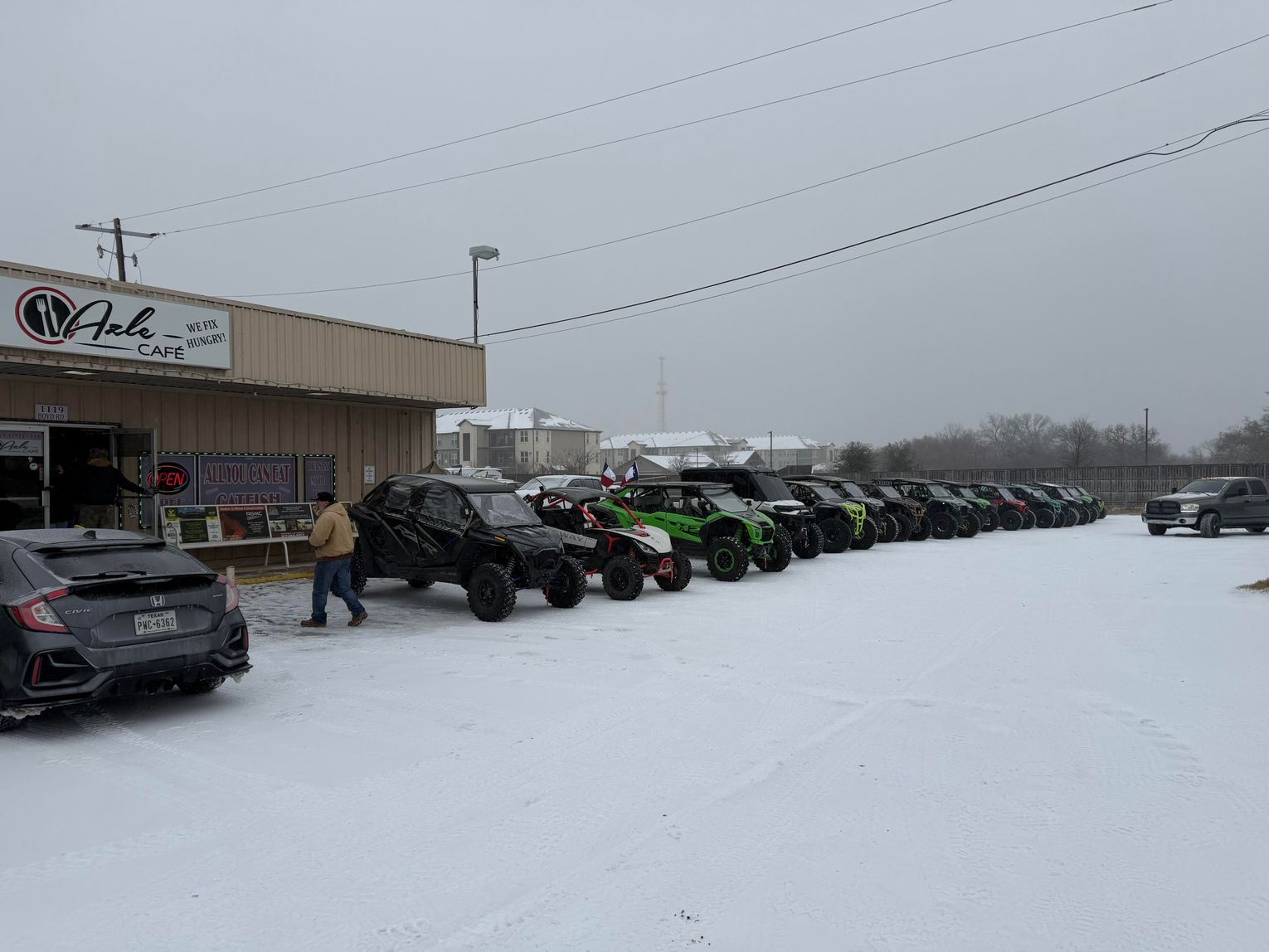 Matt Johnson, owner of Cocktails Bar & Grill, and Sabrina Sanders Pyle, owner of Azle Café, hosted the third annual Snowmageddon Meet, Eat & Ride Saturday, Jan. 25.