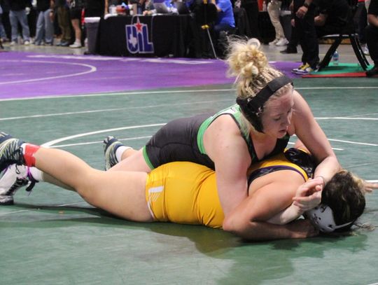 Freshman Zaylyn Woods completed an undefeated season at 49-0, capturing a state title in her first trip to the tournament. Woods’ championship carried special meaning for the program, since her mother, Montana (Stewart) De La Rosa, was a member of Azle’s previous girls state championship team and was inducted into the Azle Athletics Hall of Fame in 2023.
