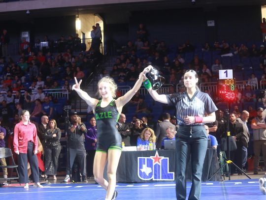 The Azle Lady Hornets claimed the 2026 UIL State Wrestling Championship, while the Azle boys finished as state runner-up, capping a historic showing for the Hornets at the state tournament Feb. 13–14 at the Berry Center, home of Cypress-Fairbanks ISD.