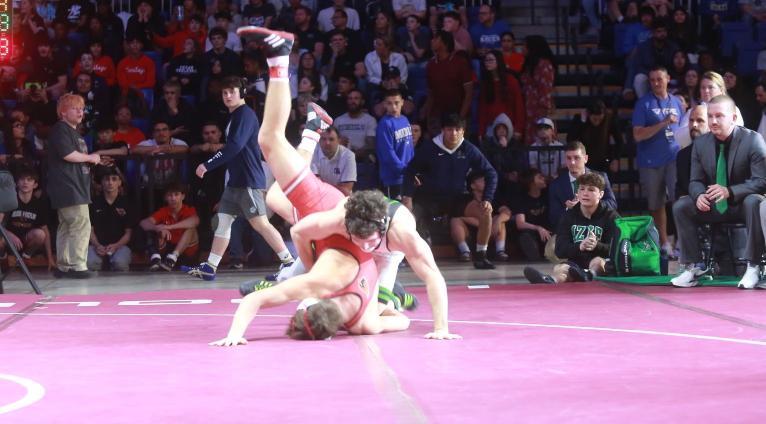 The featured bout of the evening matched two wrestlers who finished as state runners-up as freshmen in 2025, Tyler Yancey of Azle and Jaxson Johnson of Melissa. With his gold medal-winning brother Chase in his corner, Tyler Yancey delivered a great performance to earn his first state title.