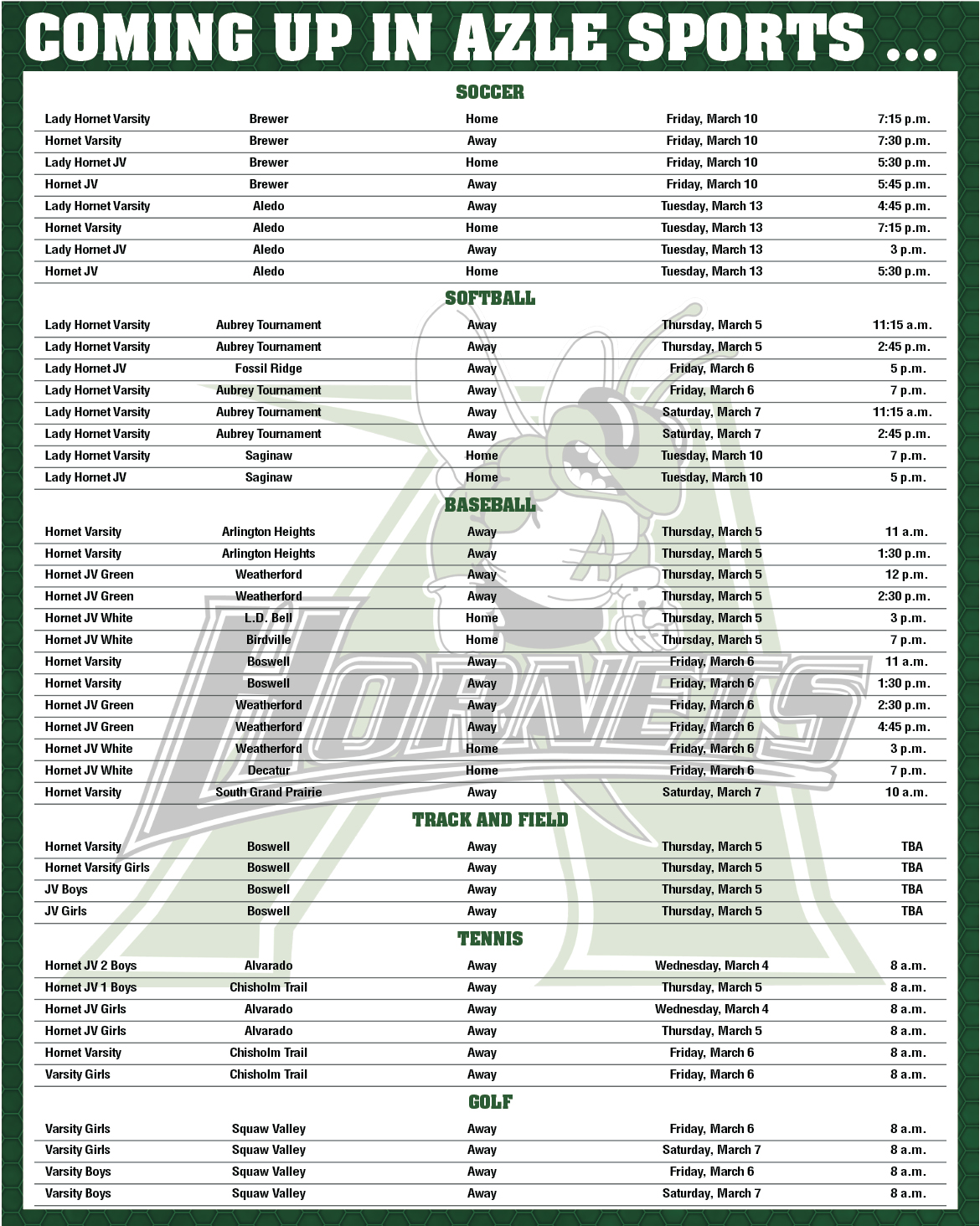 Sports Calendar