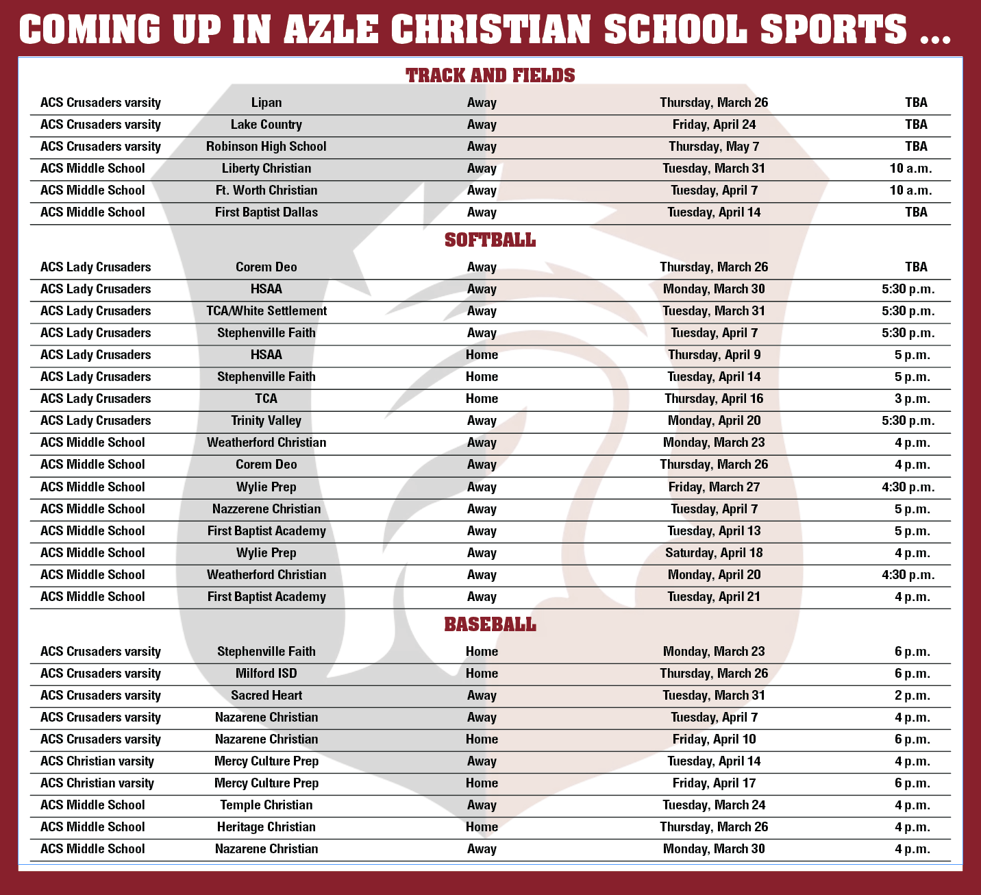 COMING UP IN AZLE CHRISTIAN SCHOOL SPORTS …
