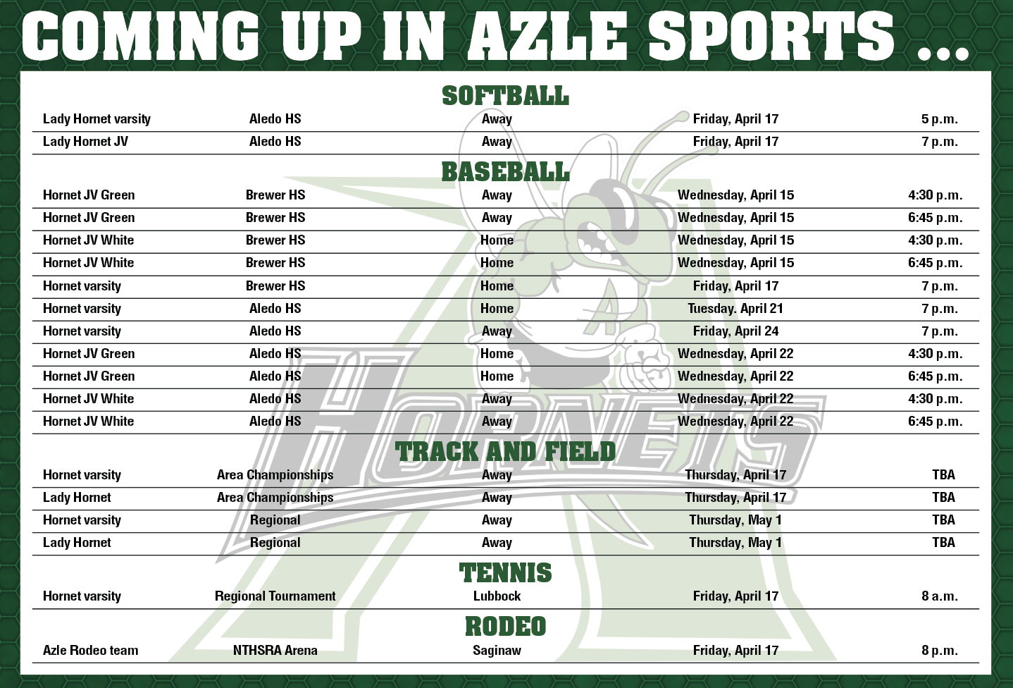 Coming up in Azle Sports